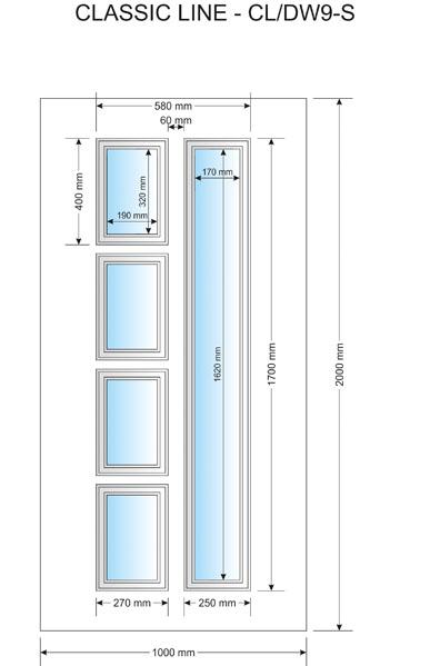 Jest to grupa bardzo popularnych wypełnień drzwiowych z elementami szklanymi - "S", które za pośrednictwem ramek umieszczone są w panelu.